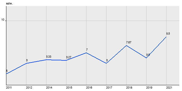 5 млн. руб, а в 2021 году - 8.5 млн. руб. Таким образом, средняя стоимость однокомнатных квартир в районе "Марьино" за