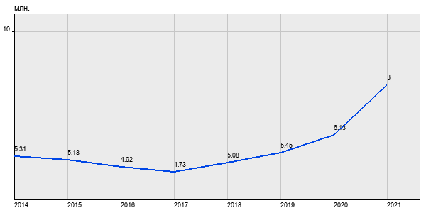 5.31 млн. руб, а в 2021 году - 8 млн. руб. Таким образом, средняя стоимость однокомнатных квартир в районе "" за