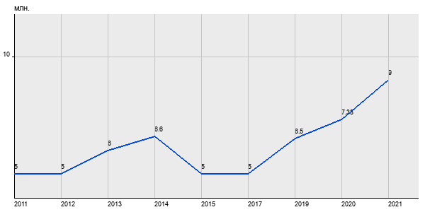 5 млн. руб, а в 2021 году - 9 млн. руб. Таким образом, средняя стоимость двухкомнатных квартир в районе "" за