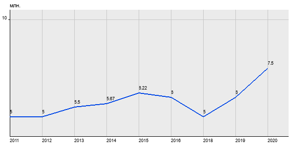 5 млн. руб, а в 2020 году - 7.5 млн. руб. Таким образом, средняя стоимость однокомнатных квартир в районе "" за