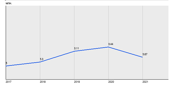 5 млн. руб, а в 2021 году - 5.67 млн. руб. Таким образом, средняя стоимость однокомнатных квартир в районе "" за