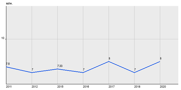 7.5 млн. руб, а в 2020 году - 8 млн. руб. Таким образом, средняя стоимость двухкомнатных квартир в районе "Ясенево" за