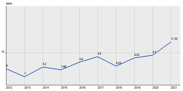 8 млн. руб, а в 2021 году - 11.33 млн. руб. Таким образом, средняя стоимость однокомнатных квартир в районе "Крылатское" за