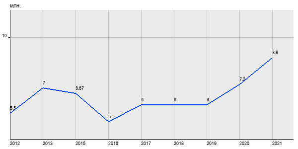 5.5 млн. руб, а в 2021 году - 8.8 млн. руб. Таким образом, средняя стоимость двухкомнатных квартир в районе "Восточное Дегунино" за