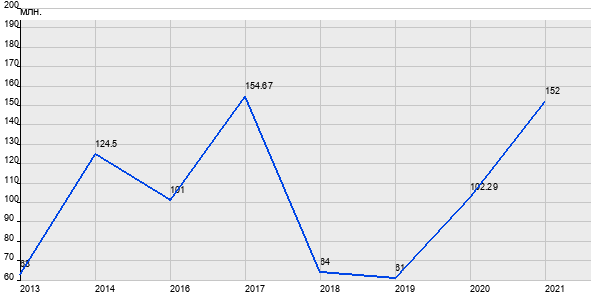 63 млн. руб, а в 2021 году - 152 млн. руб. Таким образом, средняя стоимость четырёхкомнатных квартир в районе "Дорогомилово" за