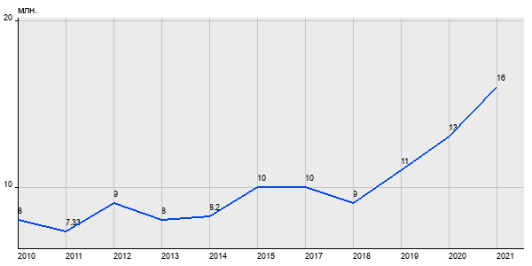 8 млн. руб, а в 2021 году - 16 млн. руб. Таким образом, средняя стоимость двухкомнатных квартир в районе "" за