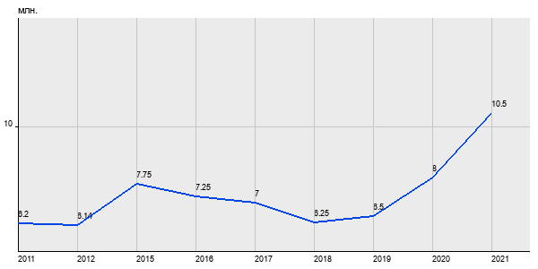 6.2 млн. руб, а в 2021 году - 10.5 млн. руб. Таким образом, средняя стоимость двухкомнатных квартир в районе "" за