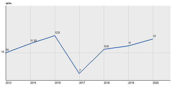 10 млн. руб, а в 2020 году - 12 млн. руб. Таким образом, средняя стоимость однокомнатных квартир в районе "Проспект Вернадского" за