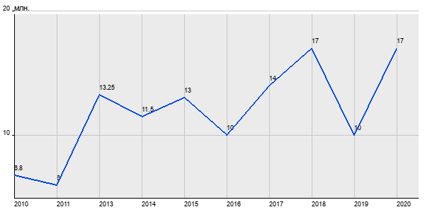6.8 млн. руб, а в 2020 году - 17 млн. руб. Таким образом, средняя стоимость двухкомнатных квартир в районе "Пресненский" за