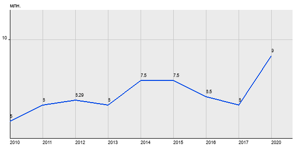 5 млн. руб, а в 2020 году - 9 млн. руб. Таким образом, средняя стоимость двухкомнатных квартир в районе "" за