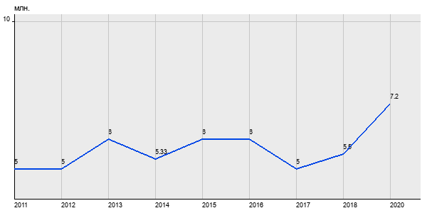 5 млн. руб, а в 2020 году - 7.2 млн. руб. Таким образом, средняя стоимость однокомнатных квартир в районе "Бибирево" за