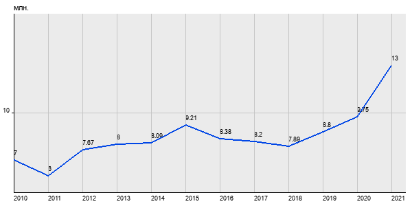 7 млн. руб, а в 2021 году - 13 млн. руб. Таким образом, средняя стоимость однокомнатных квартир в районе "Фили-Давыдково" за