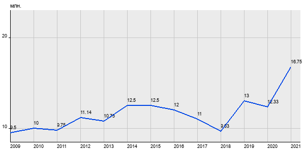 9.5 млн. руб, а в 2021 году - 16.75 млн. руб. Таким образом, средняя стоимость двухкомнатных квартир в районе "" за