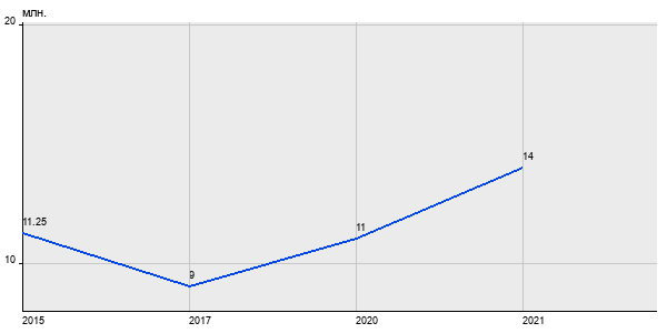11.25 млн. руб, а в 2021 году - 14 млн. руб. Таким образом, средняя стоимость двухкомнатных квартир в районе "Тропарёво-Никулино" за
