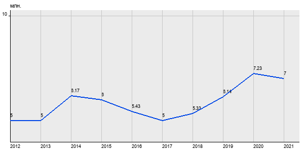 5 млн. руб, а в 2021 году - 7 млн. руб. Таким образом, средняя стоимость однокомнатных квартир в районе "Северное Тушино" за