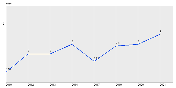 5.13 млн. руб, а в 2021 году - 9 млн. руб. Таким образом, средняя стоимость двухкомнатных квартир в районе "Отрадное" за