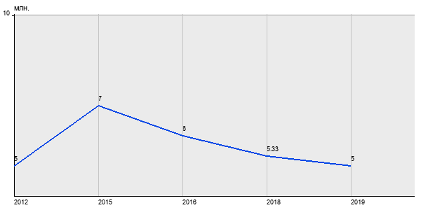 5 млн. руб, а в 2019 году - 5 млн. руб. Таким образом, средняя стоимость однокомнатных квартир в районе "Перово" за
