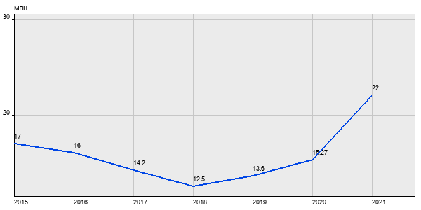 17 млн. руб, а в 2021 году - 22 млн. руб. Таким образом, средняя стоимость двухкомнатных квартир в районе "Красносельский" за