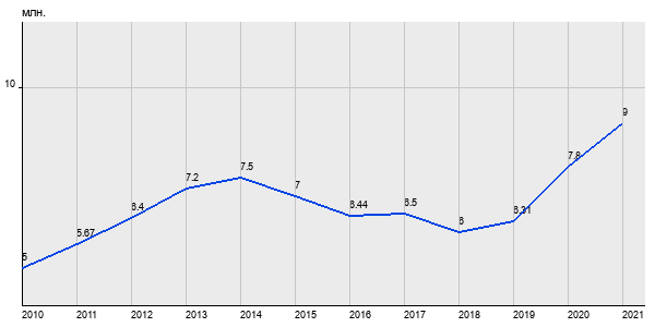 5 млн. руб, а в 2021 году - 9 млн. руб. Таким образом, средняя стоимость однокомнатных квартир в районе "" за