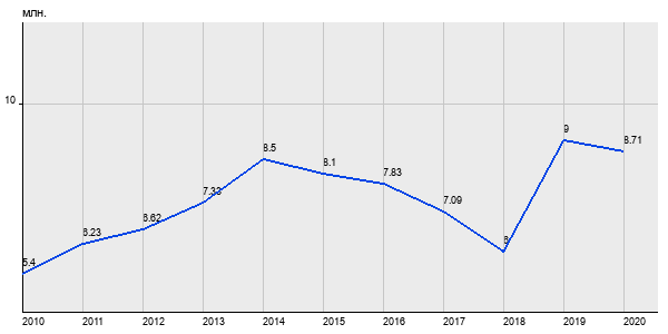 5.4 млн. руб, а в 2020 году - 8.71 млн. руб. Таким образом, средняя стоимость однокомнатных квартир в районе "Марьино" за