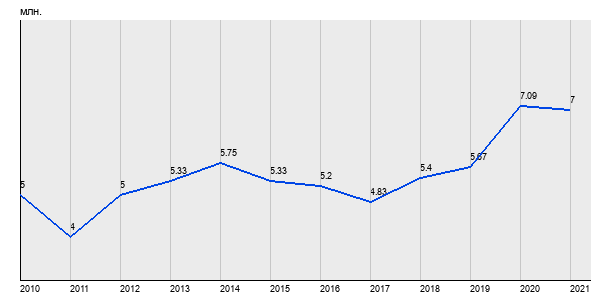 5 млн. руб, а в 2021 году - 7 млн. руб. Таким образом, средняя стоимость однокомнатных квартир в районе "" за