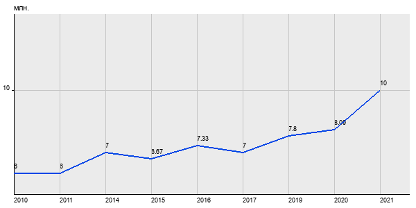 6 млн. руб, а в 2021 году - 10 млн. руб. Таким образом, средняя стоимость двухкомнатных квартир в районе "Кунцево" за