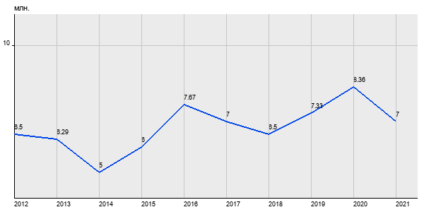 6.5 млн. руб, а в 2021 году - 7 млн. руб. Таким образом, средняя стоимость двухкомнатных квартир в районе "Преображенское" за