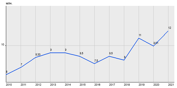 6 млн. руб, а в 2021 году - 12 млн. руб. Таким образом, средняя стоимость двухкомнатных квартир в районе "Москворечье-Сабурово" за