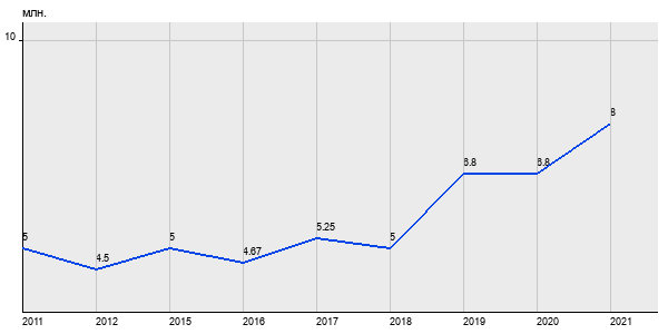 5 млн. руб, а в 2021 году - 8 млн. руб. Таким образом, средняя стоимость однокомнатных квартир в районе "Северный" за
