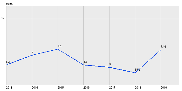 6.2 млн. руб, а в 2019 году - 7.44 млн. руб. Таким образом, средняя стоимость однокомнатных квартир в районе "" за