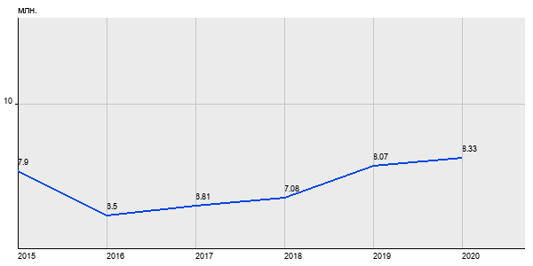 7.9 млн. руб, а в 2020 году - 8.33 млн. руб. Таким образом, средняя стоимость двухкомнатных квартир в районе "" за