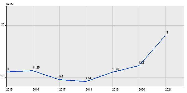 11 млн. руб, а в 2021 году - 18 млн. руб. Таким образом, средняя стоимость двухкомнатных квартир в районе "Южнопортовый" за
