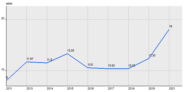 8 млн. руб, а в 2021 году - 18 млн. руб. Таким образом, средняя стоимость трёхкомнатных квартир в районе "Южное Бутово" за