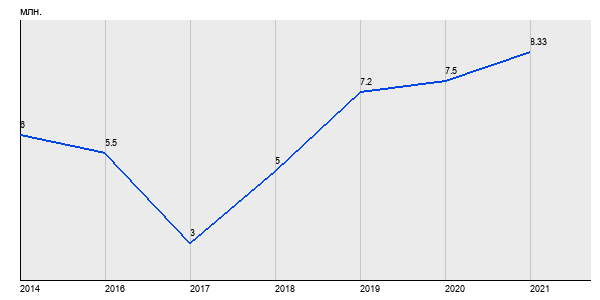6 млн. руб, а в 2021 году - 8.33 млн. руб. Таким образом, средняя стоимость двухкомнатных квартир в районе "Вешняки" за