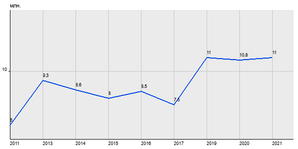 6 млн. руб, а в 2021 году - 11 млн. руб. Таким образом, средняя стоимость двухкомнатных квартир в районе "Коньково" за