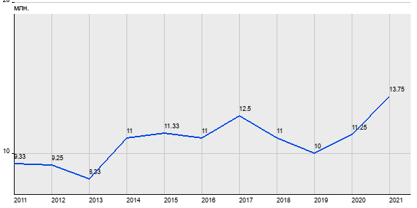 9.33 млн. руб, а в 2021 году - 13.75 млн. руб. Таким образом, средняя стоимость двухкомнатных квартир в районе "Северное Измайлово" за