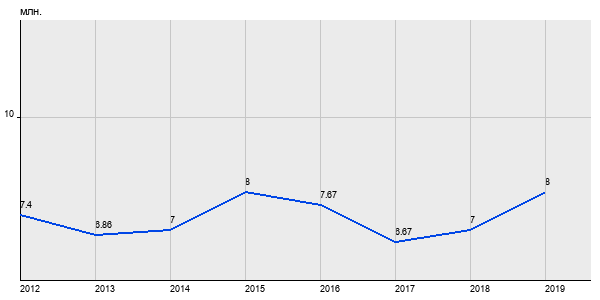 7.4 млн. руб, а в 2019 году - 8 млн. руб. Таким образом, средняя стоимость двухкомнатных квартир в районе "Новокосино" за