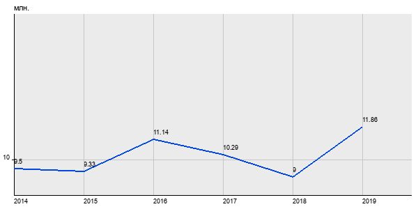 9.5 млн. руб, а в 2019 году - 11.86 млн. руб. Таким образом, средняя стоимость двухкомнатных квартир в районе "Алексеевский" за