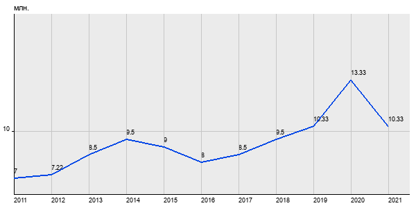 7 млн. руб, а в 2021 году - 10.33 млн. руб. Таким образом, средняя стоимость однокомнатных квартир в районе "Замоскворечье" за