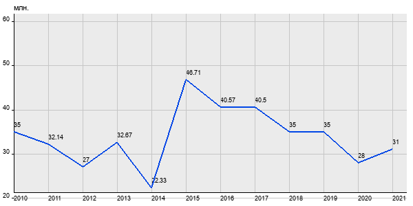 35 млн. руб, а в 2021 году - 31 млн. руб. Таким образом, средняя стоимость двухкомнатных квартир в районе "Пресненский" за