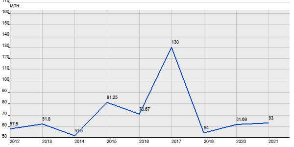 57.5 млн. руб, а в 2021 году - 63 млн. руб. Таким образом, средняя стоимость четырёхкомнатных квартир в районе "Тверской" за