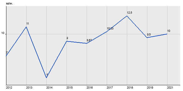 7 млн. руб, а в 2021 году - 10 млн. руб. Таким образом, средняя стоимость двухкомнатных квартир в районе "Ярославский" за