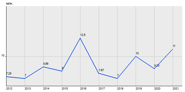 7.25 млн. руб, а в 2021 году - 11 млн. руб. Таким образом, средняя стоимость однокомнатных квартир в районе "" за