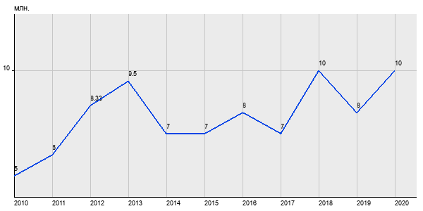 5 млн. руб, а в 2020 году - 10 млн. руб. Таким образом, средняя стоимость однокомнатных квартир в районе "" за