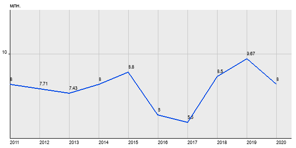 8 млн. руб, а в 2020 году - 8 млн. руб. Таким образом, средняя стоимость двухкомнатных квартир в районе "" за