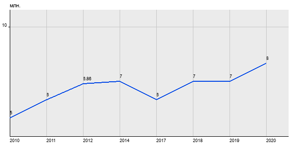 5 млн. руб, а в 2020 году - 8 млн. руб. Таким образом, средняя стоимость двухкомнатных квартир в районе "" за