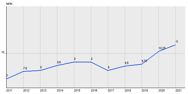 7 млн. руб, а в 2021 году - 11 млн. руб. Таким образом, средняя стоимость двухкомнатных квартир в районе "" за