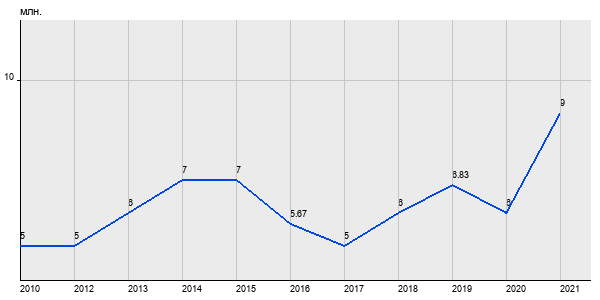 5 млн. руб, а в 2021 году - 9 млн. руб. Таким образом, средняя стоимость двухкомнатных квартир в районе "Восточное Дегунино" за