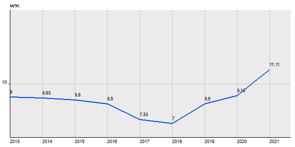 9 млн. руб, а в 2021 году - 11.11 млн. руб. Таким образом, средняя стоимость двухкомнатных квартир в районе "" за