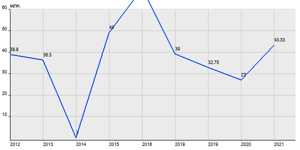 38.8 млн. руб, а в 2021 году - 43.33 млн. руб. Таким образом, средняя стоимость трёхкомнатных квартир в районе "Аэропорт" за
